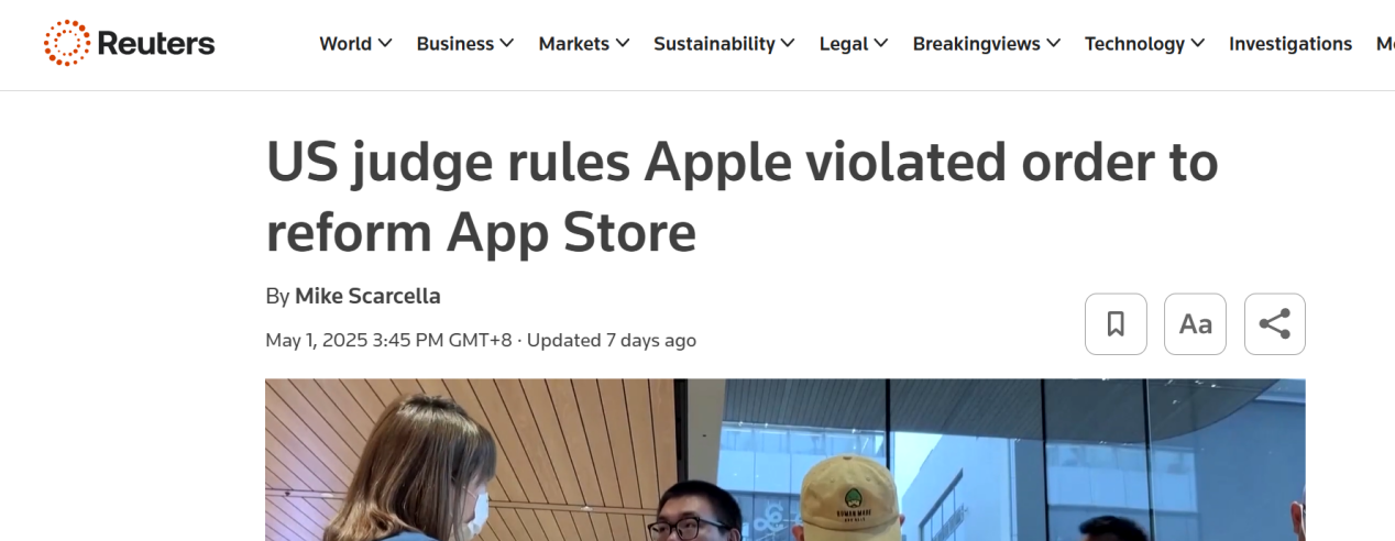 此前,美国联邦法官Yvonne Gonzalez Rogers于5月1日作出裁定,认定苹果公司违反了2021年法院命令,未能在App Store中开放外部支付选项,构成反竞争行为。法官指出,苹果不仅未能遵守命令,反而设计新的反竞争措施,意图维持其高利润的30%应用内购买抽佣模式。尽管苹果随后允许开发者引导用户通过网页完成应用内购买交易,但仍强收27%的佣金。